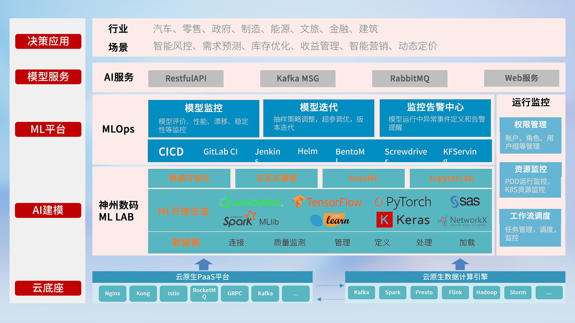 数据+模型双引擎驱动,,面向智能服务场景,,快速灵活利用AI技术,,,,支持业务决策,,助力企业智能化转型破局。。。
